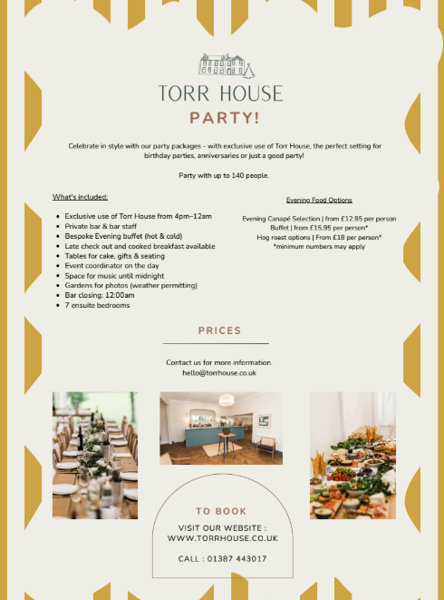 Book a party at Torr house and have exclusive use of the whole venue for your celebration.