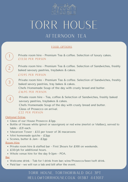 For large group bookings, pre order from our Afternoon Tea menu and book either of our rooms or the whole venue.